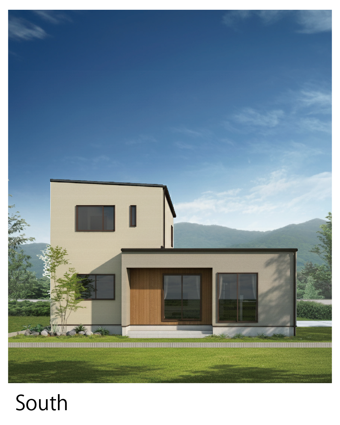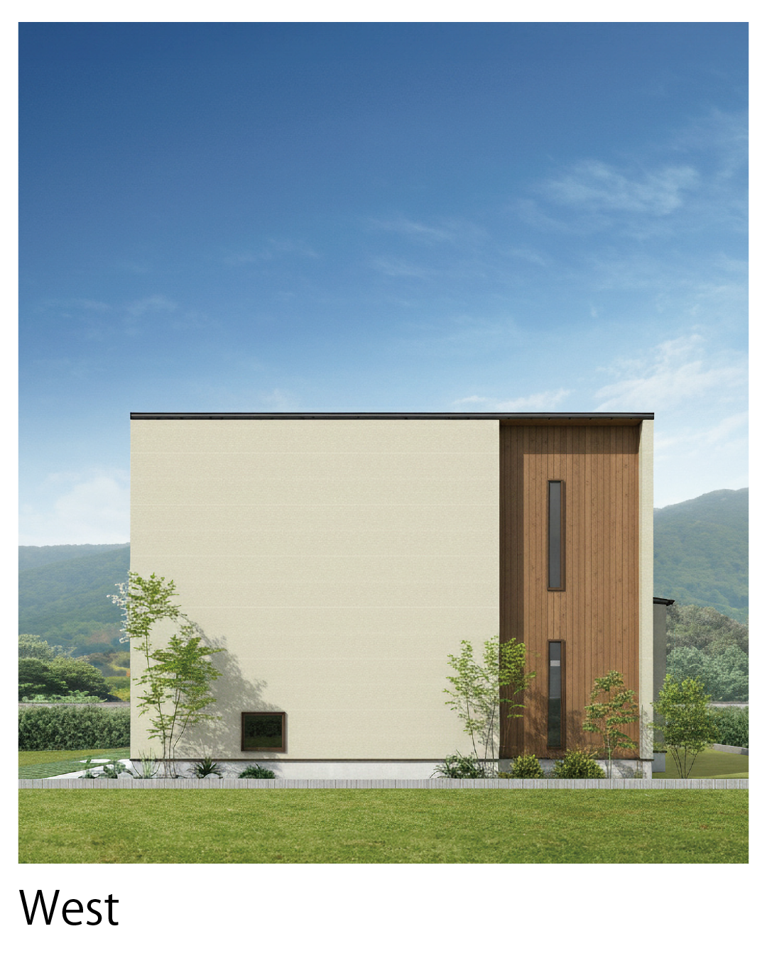 開けた土地に建てられたこちらのお住まいは、東・西・南・北から見える方向によって表情をガラッと変えるデザインとなっています。