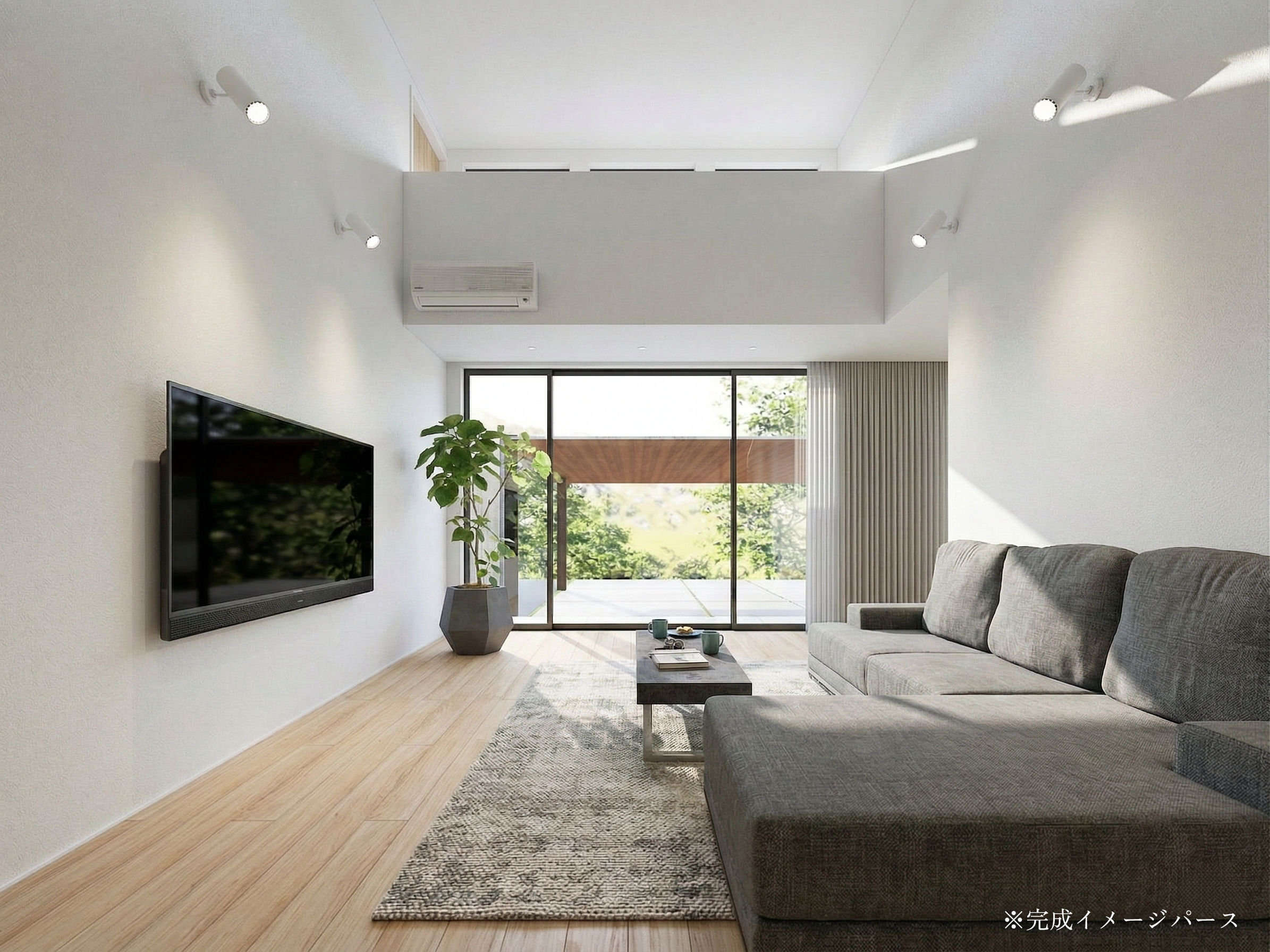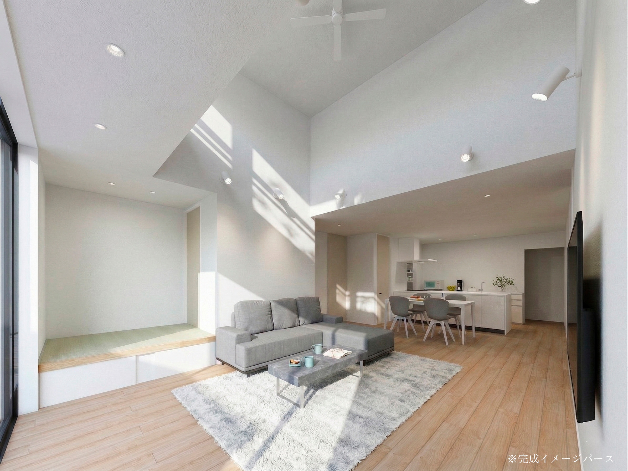高天井で開放感あふれるLDK、