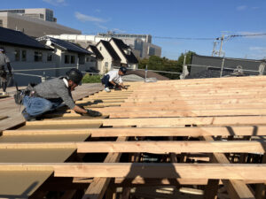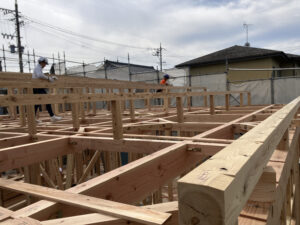 雨が多い中、この日はお天気にもめぐまれ無事上棟することができました。