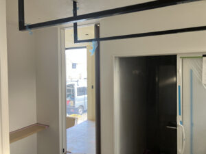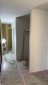 壁紙が貼られることで空間の印象が一気に変わり、図面や骨組みだけでは想像しきれなかった“暮らしのイメージ”が、少しずつ形になってきました。